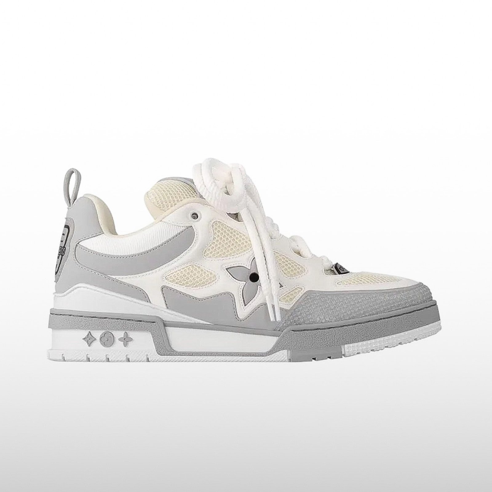 Son mix de tons gris / blanc, ses empiècements soignés et son branding LV discret en font une paire parfaite pour ceux qui veulent du luxe sans trop en faire.